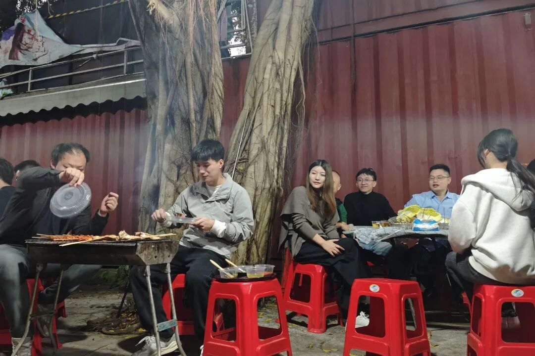 自助烧烤体验:现场准备了丰富的烧烤食材,包括各类肉串、蔬菜等。同事们有的专注烧烤技术,精心控制火候,有的负责食材分配和调料准备,新手则在有经验的同事指导下学习翻烤技巧。